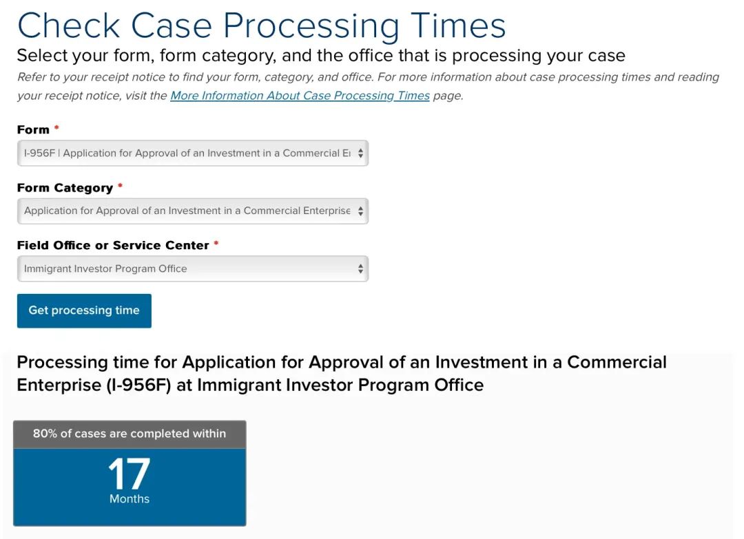 近日,美国移民局公布了当前I-956F的审案进度,如下图: